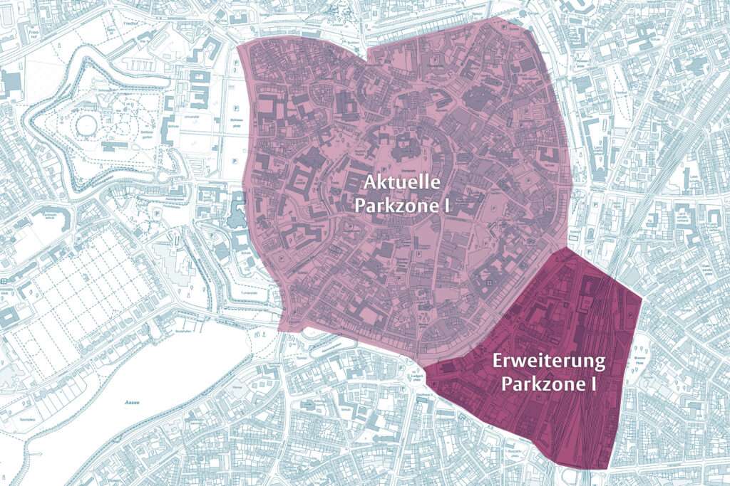 Parallel zu den höheren Preisen wird auch das Gebiet der Parkzone I größer. Neu hinzukommen sollen unter anderem die Bereiche rund um die Von-Vincke-Straße, die Hafenstraße, die Bremer Straße sowie Teile der Wolbecker Straße. Damit zählt künftig auch das direkte Umfeld des Hauptbahnhofs zur teuersten Parkzone.
